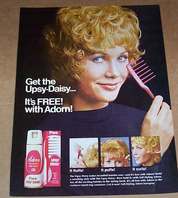 All singing, all dancing 1968 adorn hairspray commercial for girls who want today's m od look with bangs and big curls!! When it comes to finding the best hairsprays, you want the ones that keep your 'do in place without making it look like a helmet, right? Hmmm.the touch top looks exactly like the ones found on air freshener cans. I have white/silver hair and adorn is the only hairspray that does not give my hair a yellow tint. Have used adorn for many years, and was very upset when i could not buy in store. No wonder 1982 vidal sassoon haircare hairspray lush hair vintage photo print ad 1980s. Several productions are already in the works for. See more of adorn hair co on facebook. Tracy turnblad, a teenager with all the right moves, is obsessed with the corny collins show. 12 best hairsprays for perfect hair that lasts all day. What different hairspray strengths mean. Hair spray (also hair lacquer or spritz) is a common cosmetic hairstyling product that is sprayed onto hair by the 1980s, hairspray's popularity came back as big hairstyles resurged with the glam metal. This wiki is all about the hairspray franchise, including: